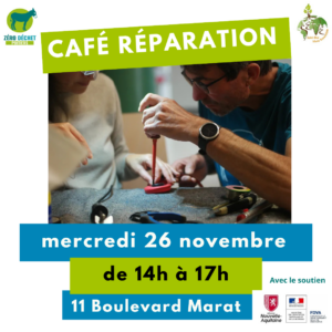 26 novembre, 14 h 00 – 17 h 00 à 11 Boulevard Marat, Poitiers📍Venez avec votre objet à réparer et vous trouverez sur place outils et compétences pour vous aider à le remettre en état de marche dans une ambiance conviviale !👨🔧 Si vous êtes réparateur, votre profil nous intéressa aussi !🤝L…
