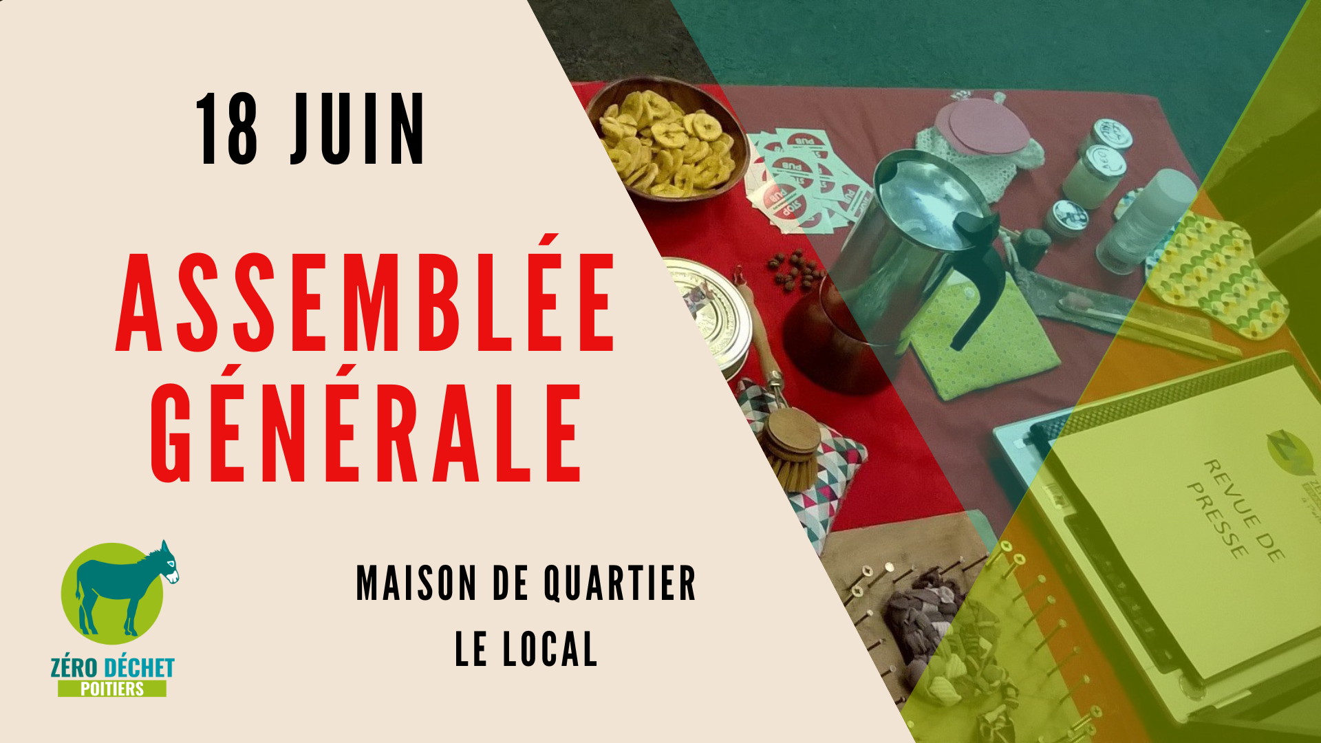 Notre assemblée générale se déroulera le mercredi 18 juin à la maison de quartier Le Local à partir de 20h. C’est un moment important pour notre association, nous vous invitons à venir vous informer sur la démarche zéro déchet, sur les actions que nous avons menées en 2024 et sur nos projets pour 2025 et 2026.