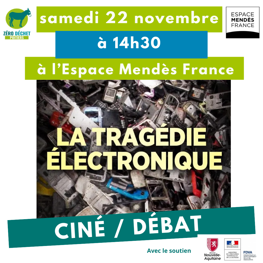 Dans le cadre de la Semaine Européenne de la Réduction des Déchets, Zéro Déchet Poitiers en partenariat avec l’Espace Mendès France vous propose de venir à la projection du film “La tragédie électronique” et de participer au temps d’échange qui clôturera cet évènement.